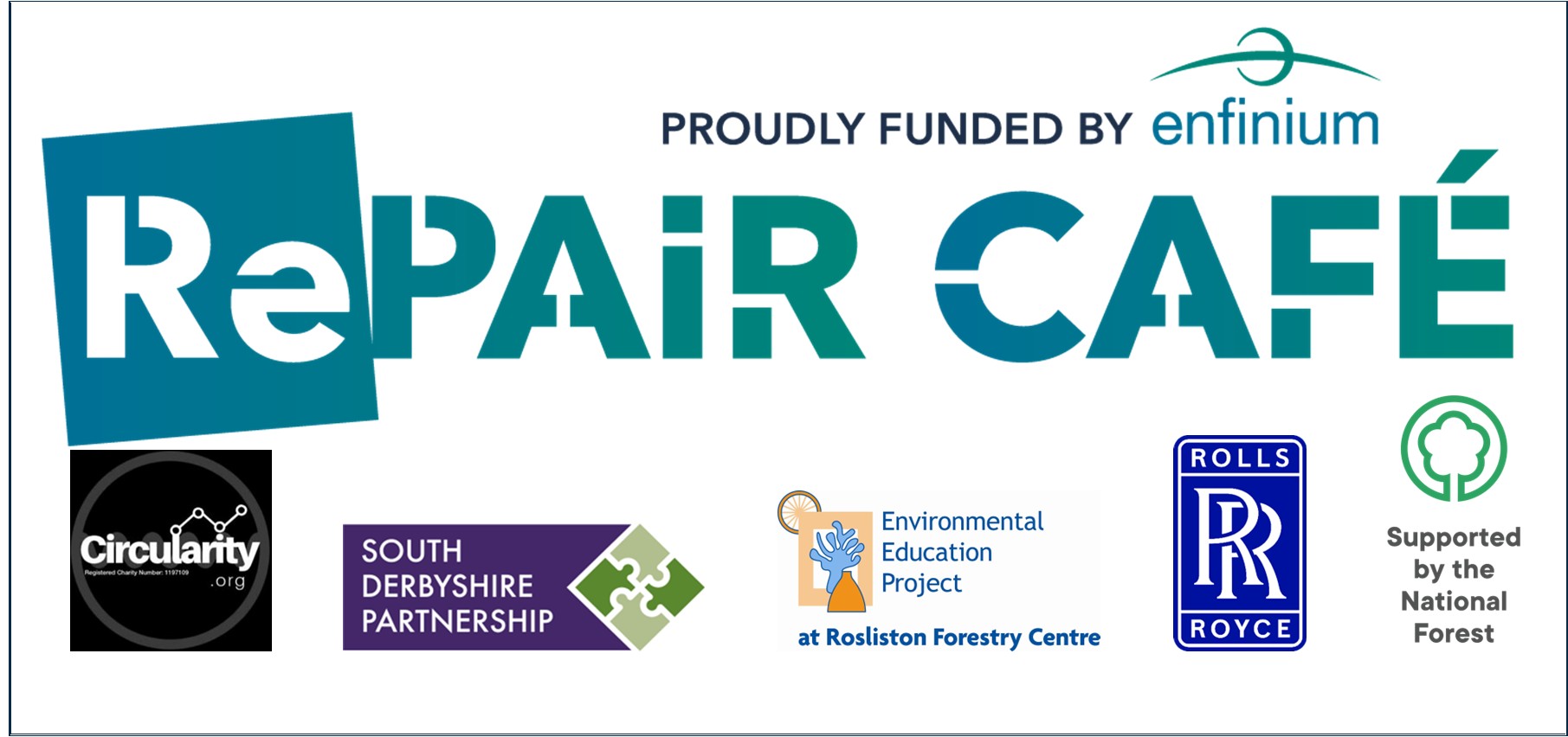 We would like to thank everyone who brings items for repair, all the volunteers doing repairs, Circularity.org, Enfinium, South Derbyshire District Council & South Derbyshire Partnership for their support.